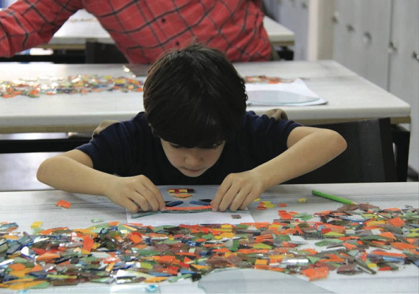 Renkli cam çubuklar, masa üstü ocak alevinde (şalumo) eritilip bazen çelik tellere, bazen diğer cam çubuklara sarılarak, eklenerek camdan yepyeni şekillere dönüşüyorlar. Bu yöntemle boncuklar, figurler ve çeşitli objeler yaratılıyor. Eğitmenlerimiz çocuklarla birebir ilgileniyor ve yaşlarına göre bazen ellerinden tutarak bazen yakından gözlemleyerek güvenli bir şekilde boncuklarını yapmalarını sağlıyorlar.